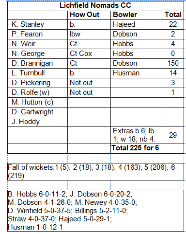 Toss: Lichfield Nomads won the toss and elected to bat